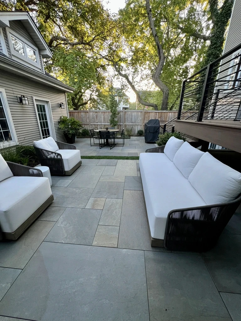 Patio costs vary based on size, material choice, site conditions, and integrated features. As a general range, natural stone patios in our area typically run between $25 and $50 per square foot installed. We provide detailed, itemized estimates after an on-site consultation so you know exactly what to expect.